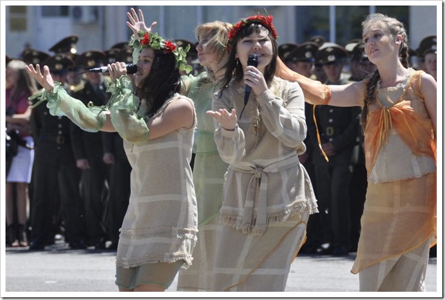 Et la parade militaire qui ouvrait les festivités sur la place Lénine conjuguait la représentation de force et la sympathie.